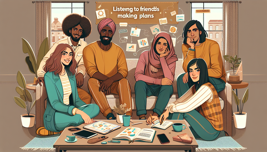 Moreover, listening to friends making plans can inspire creative thinking and spontaneity. Often, hearing about others’ ideas and activities can spark your own imagination, encouraging you to think outside the box and consider new experiences. This can lead to a more enriching social life and a willingness to try new things. Additionally, participating in these conversations, even as a listener, can build your confidence in speaking and expressing your own ideas in future discussions. By being an attentive listener, you are more likely to be invited into the plans, thereby broadening your social network and creating opportunities for language practice in diverse settings.